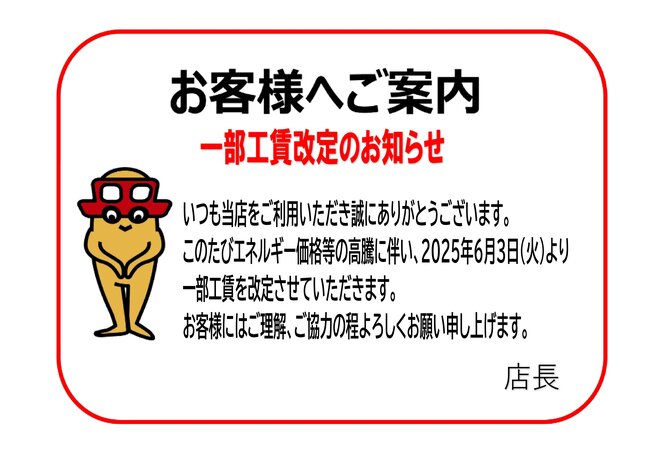 原材料の価格高騰により2025年1月10日よりピットメニューを値上げいたしました。何卒ご理解いただきますよう、お願い申し上げます。 -