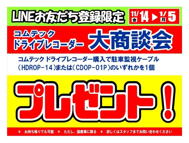 ※対象モデルを11/30(日)の期間までにご購入後、2026年1月31日(土)までに車両へお取付される方が条件とさせて頂きます。