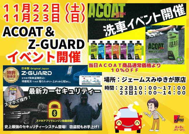 11月22日(土)11月23日(日)の2日間、【ACOAT&Z-GUARD】のイベントを開催いたします!