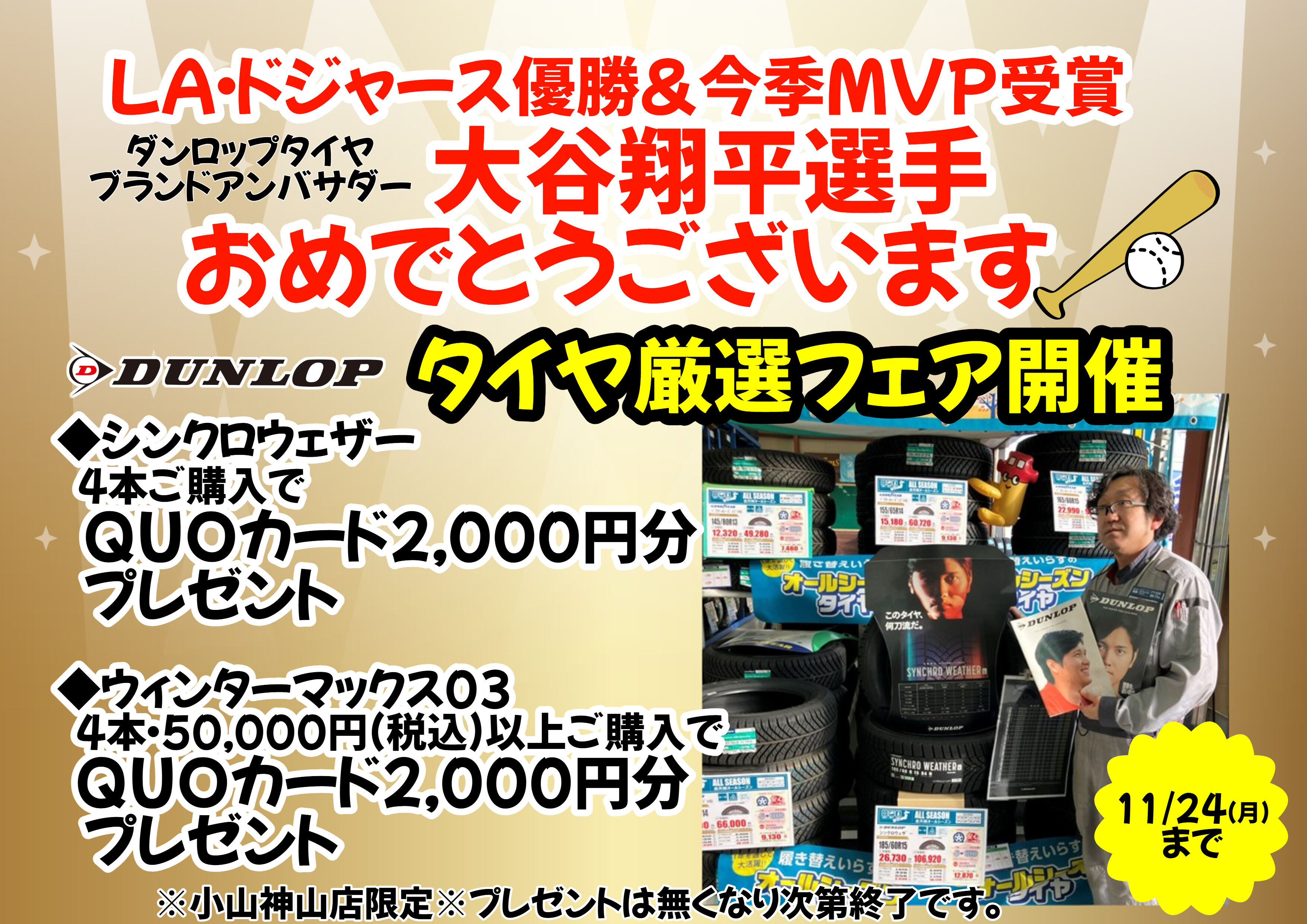11/24(月)までダンロップタイヤ厳選フェア開催いたします!