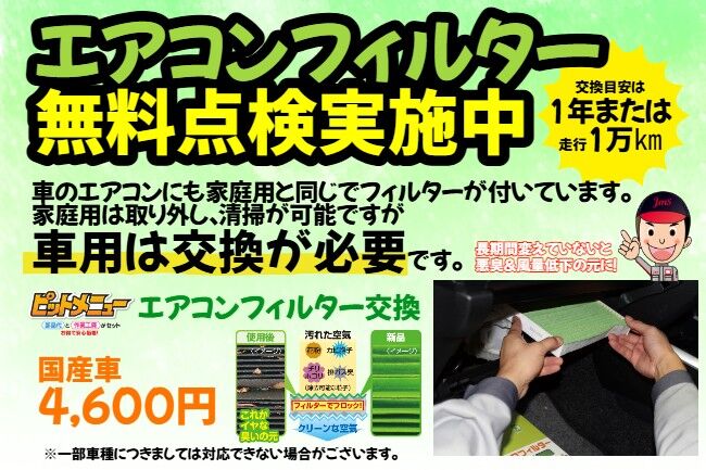 エアコンフィルター無料点検実施中