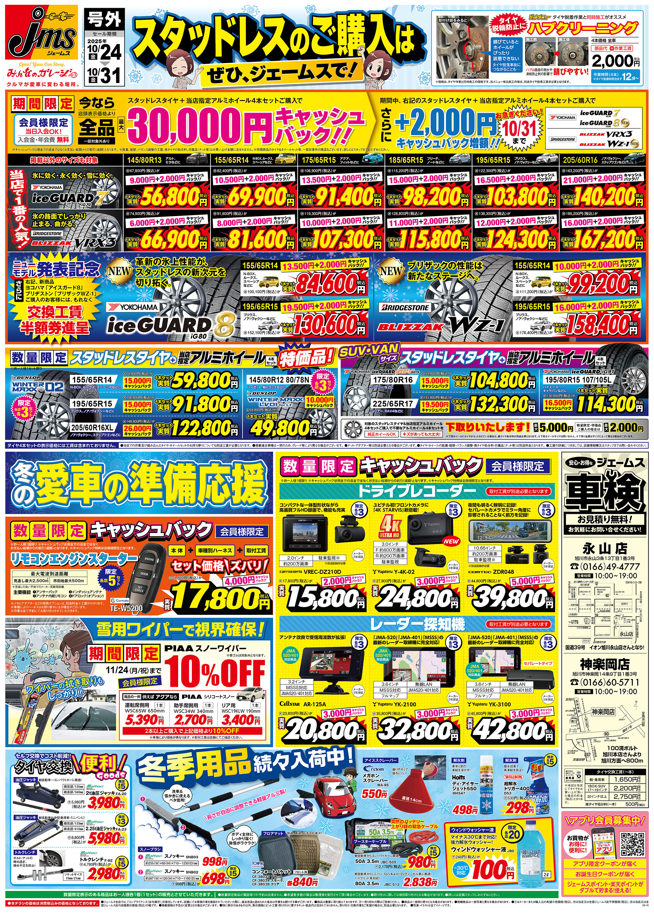 - 現金、クレジットカード、JCBギフトカード、QR決済・電子マネー(PayPay、楽天Pay)、当店指定ショッピングローン