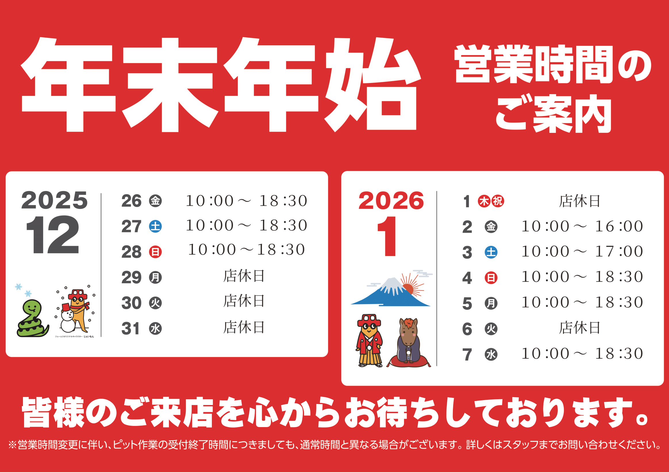- 店休日