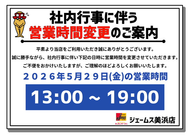 日頃よりジェームス美浜店をご利用いただき、誠にありがとうございます。