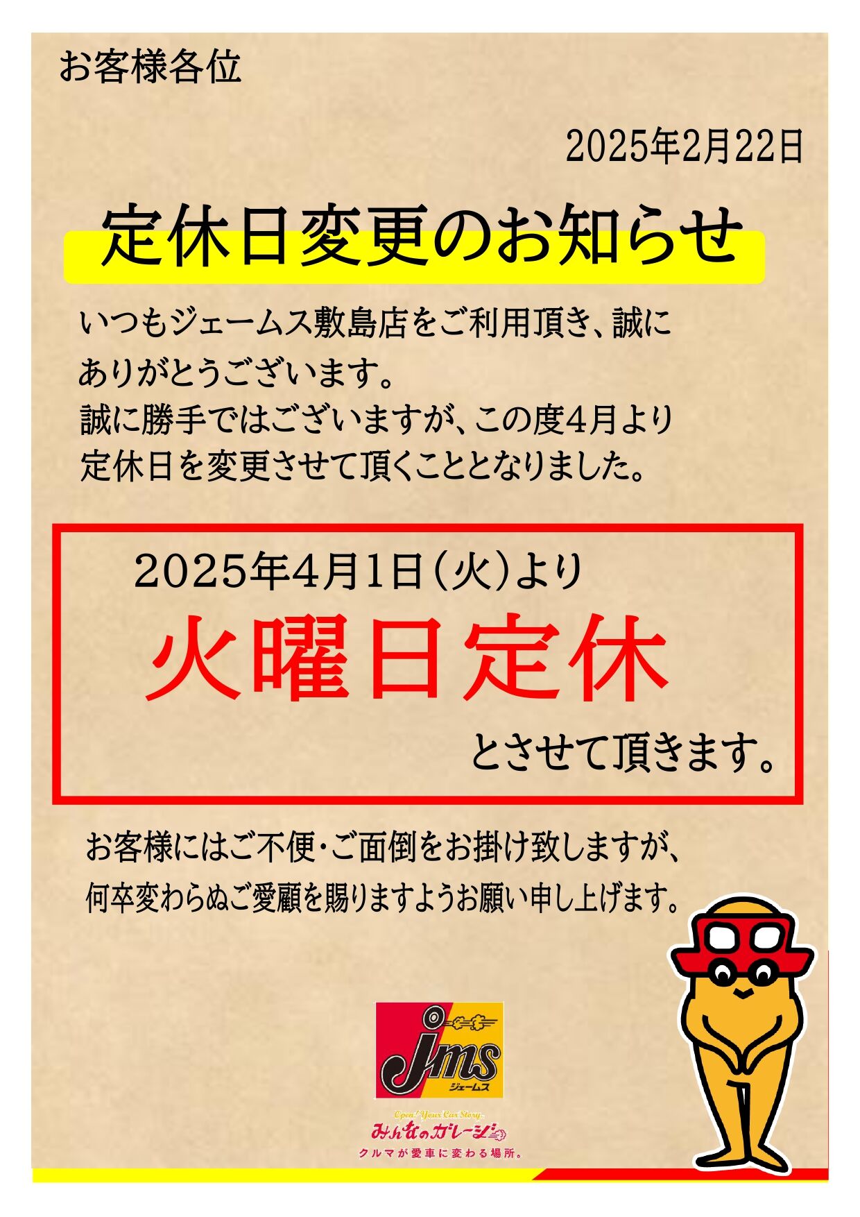 1(木) 2(金) 6(火) 13(火) 20(火) 27(火)