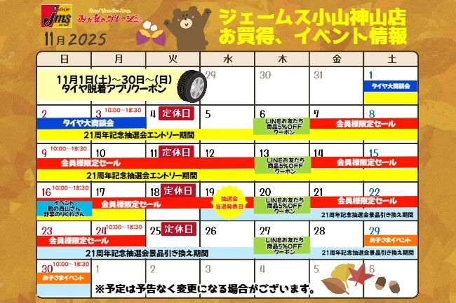 2025年11月お買い得、イベント情報【小山神山店限定】