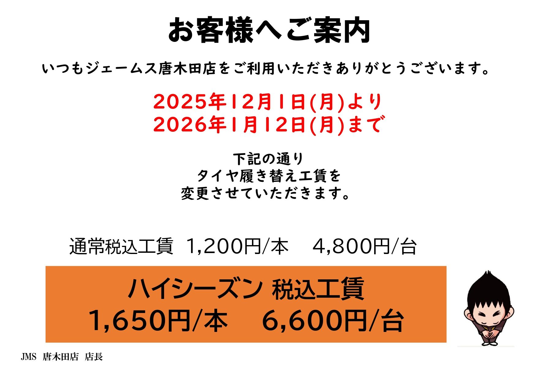 - 店休日
