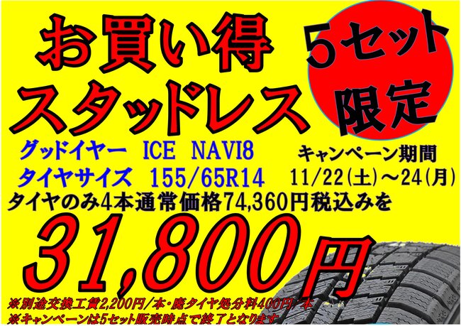 軽自動車の冬タイヤ交換を検討されているお客様今がお得です。