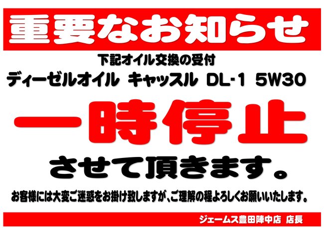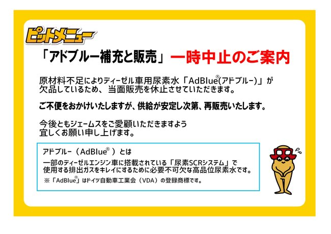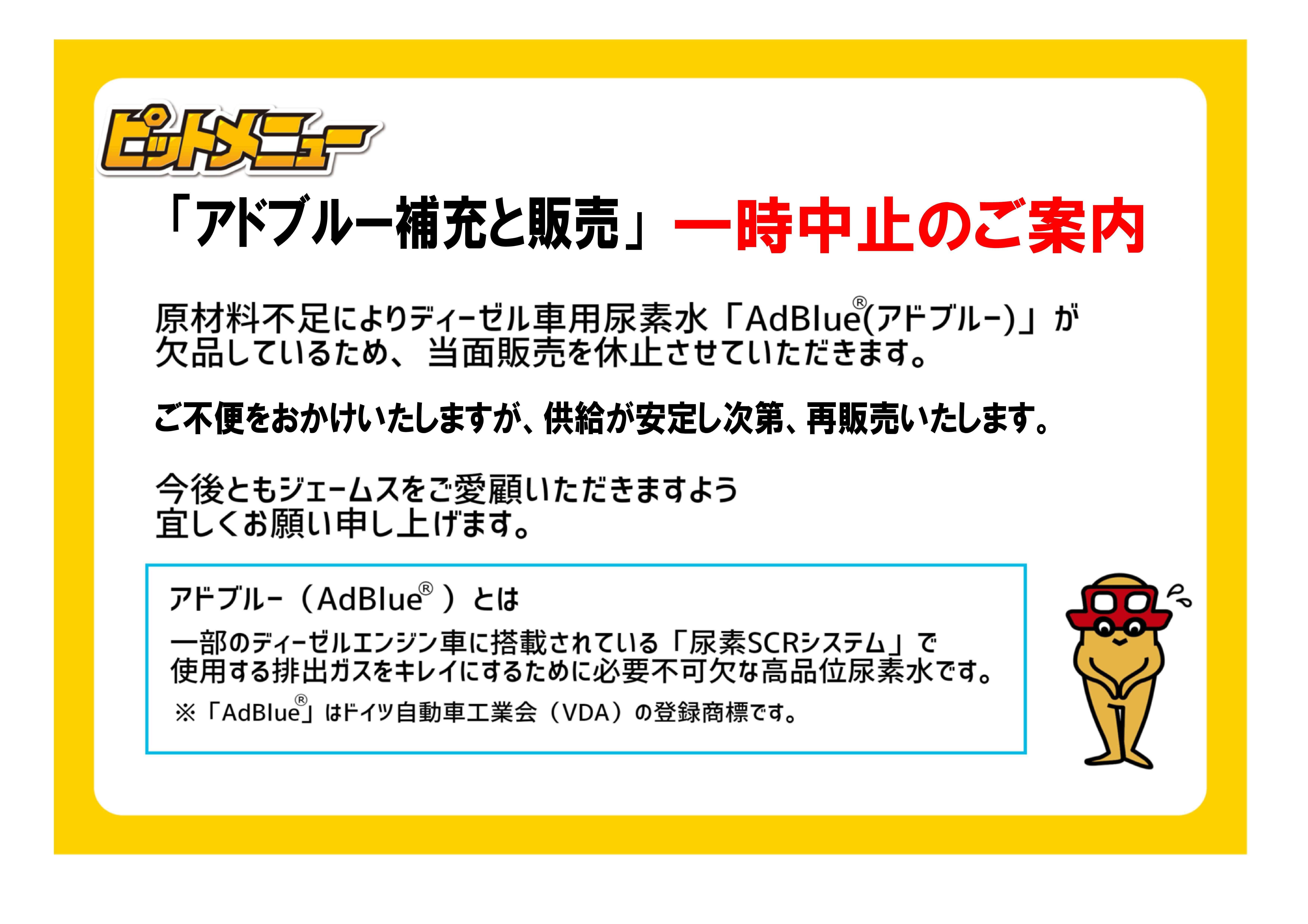 アドブルー作業受付ならびに販売の一時中止させていただきます。