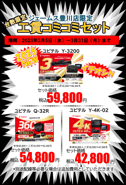 12月25日(木)まで、タイヤ・ドラレコ・ナビをお買い得価格にてご提供。
