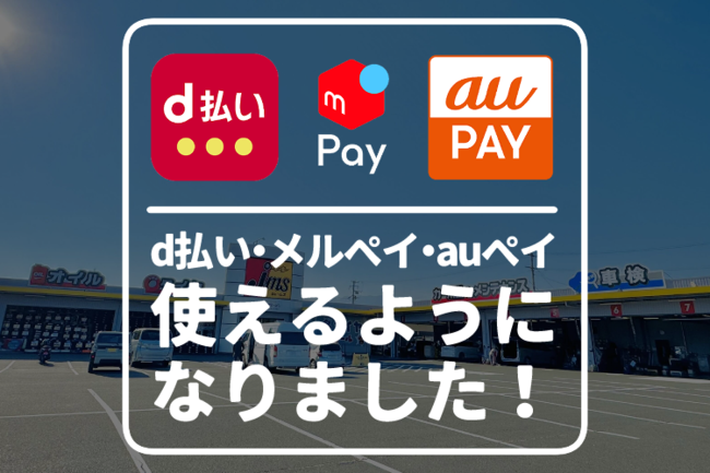- 現金、クレジットカード、JCBギフトカード、QR決済・電子マネー(PayPay、楽天Pay、d払い、auPay、メルペイ)、当店指定ショッピングローン ※タッチ決済はできません